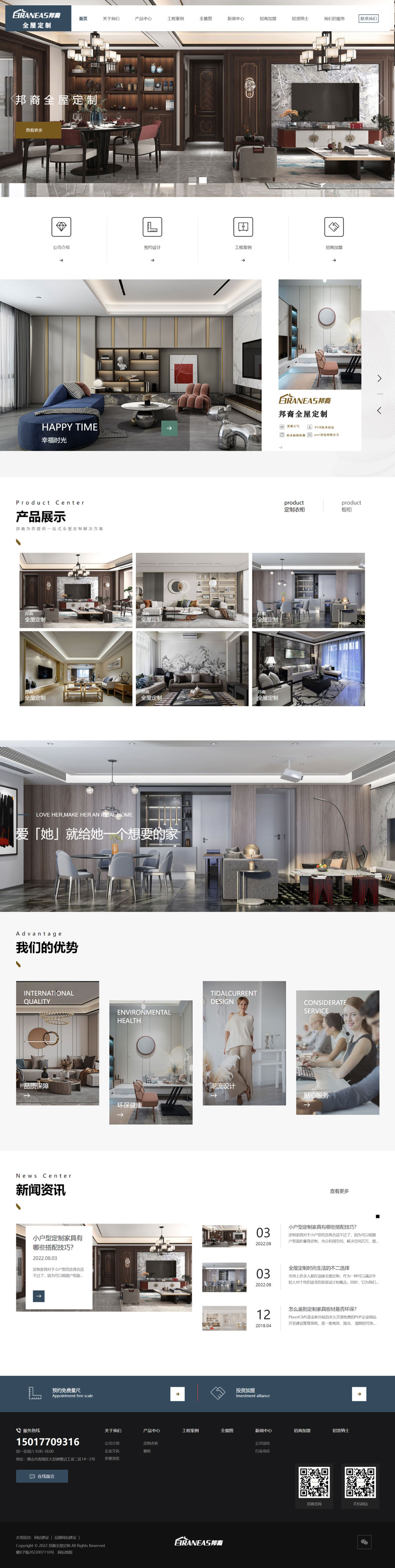 邦裔全屋定制品牌官網(wǎng)沖浪者科技定制開發(fā),公司是一家集研發(fā)、銷售、生產(chǎn)、售后于一體的個性化全屋定制公司, 公司是一家秉持著做更懂中國人的定制家居品牌的企業(yè),為了讓客戶有更好的家裝體驗,更多的產(chǎn)品選擇,邦裔全屋定制始終在這條道路上為之努力。 邦裔全屋定制自成立之來,以市場為導向,開展技術創(chuàng)新,構建邦裔全屋定制個性化定制智能制造模式